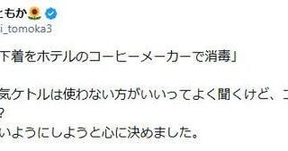 芸スポ 猪狩ともか、ホテルのコーヒーメーカーで下着を消毒する米女性に絶句「電気ケトル使わない方がいいと聞くけどコーヒーメーカーも?」