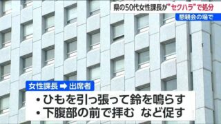 ニュー速 男性職員の下腹部に鈴とひもを付け懇親会の参加者に拝むなどを促すセクハラ 県の課長処分