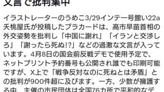 ニュー速 反戦デモ予定プラカードに「謝ったら死ぬ?ならとっとと4ね!!」文言で批判集中