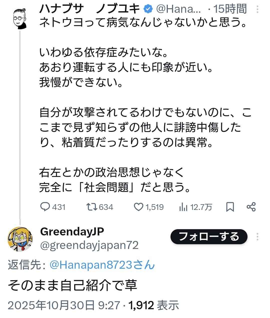 パヨさん「ネトウヨって病気なんじゃないかと思う。いわゆる依存症みたいな」