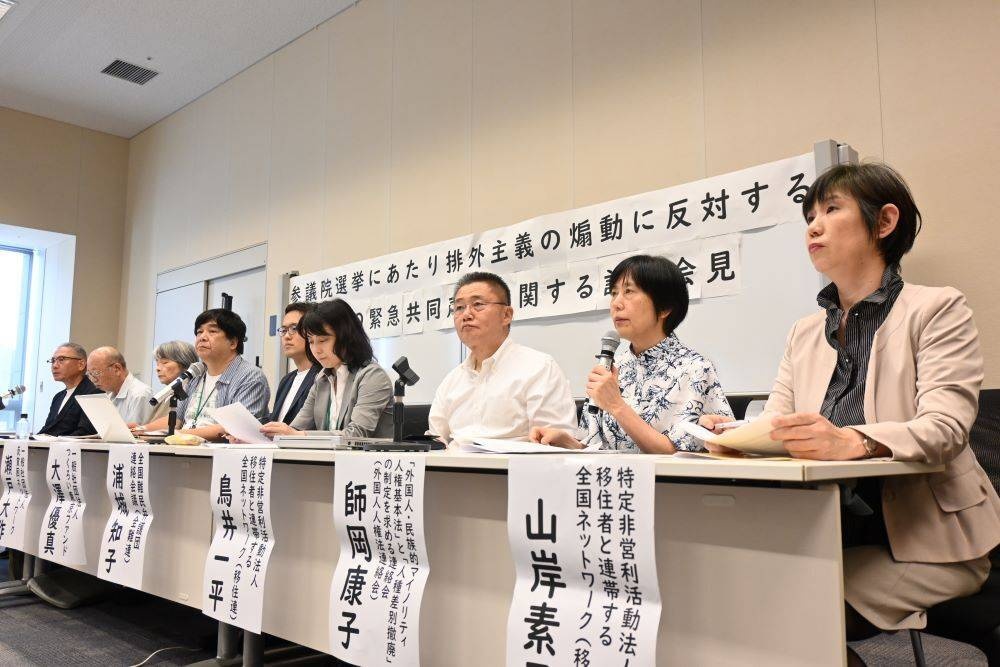 こうした幾重にも倒錯した状況に対抗するため、外国人の人権擁護や難民支援に取り組む8団体が7月8日、会見を開いて緊急共同声明を発表した。「外国人が優遇されているというのは根拠のないデマ」「政府や国会は人種差別を禁止し終了させる義務がある」という事実を突きつけ、政治による排外主義キャンペーンを批判した。