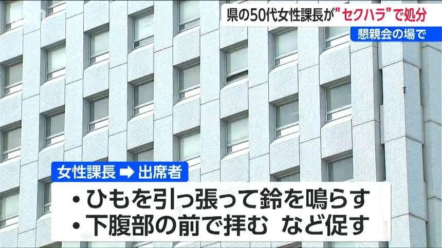 【チリン╰⋃╯チリン】男性職員の下腹部に鈴とひもを付け懇親会の参加者に拝むなど促す 新潟県の50代女性課長