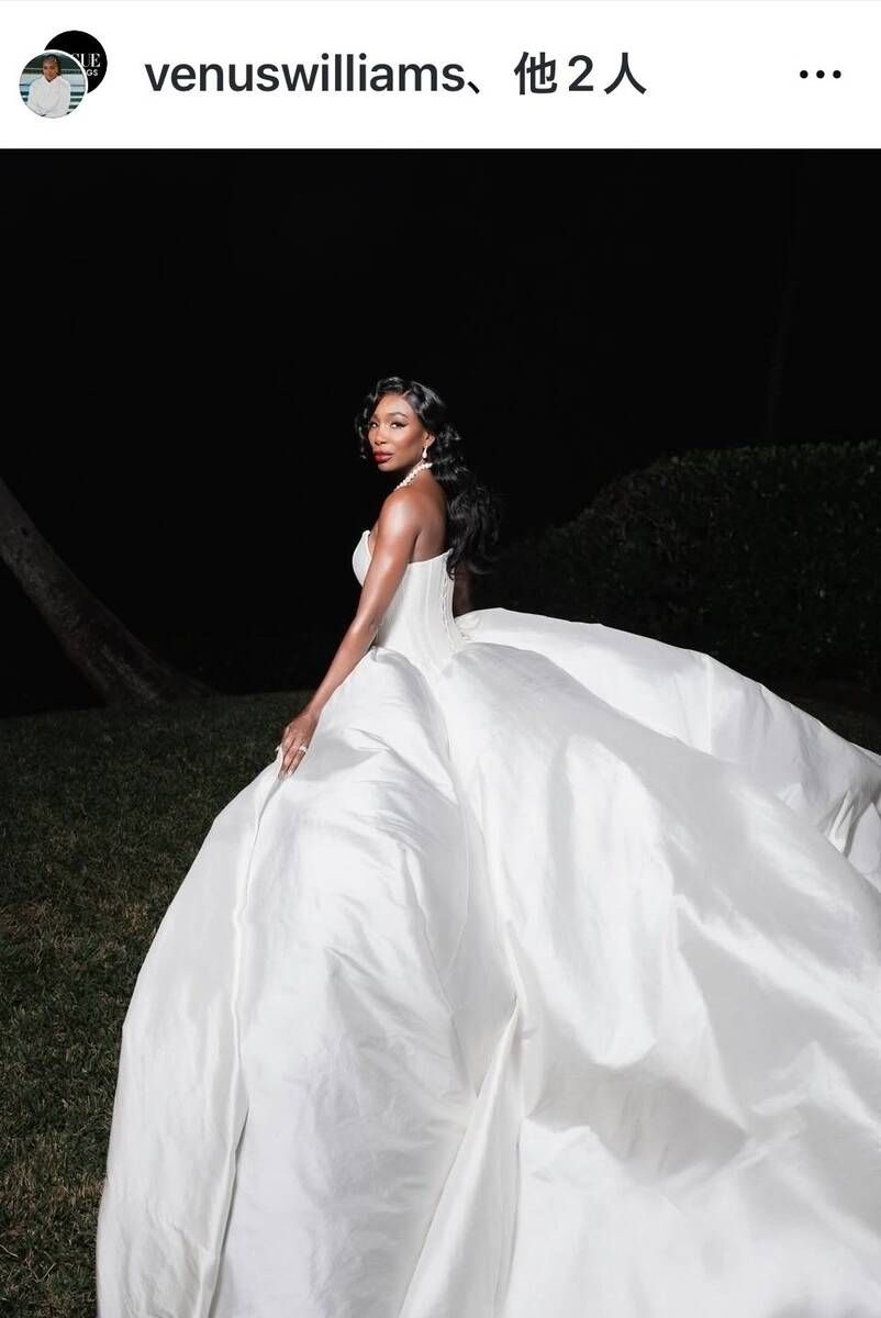 インスタグラムにファッション誌「VOGUE」が「テニスのレジェンドと俳優は、ファッションに満ちたイベント週間の先週末に、ついにフロリダで結婚式を挙げました」と米フロリダ州パームビーチで結婚式を行ったことを記載したインスタグラム投稿を引用し、自身のウェディングドレス姿をアップ。結婚式の模様や妹のセリーナの姿もある。 「私たちはとても愛し合っています。ただ、最高に幸せで、最高に美しくて、最高に甘い日でした」とビーナスの言葉も載せられた。