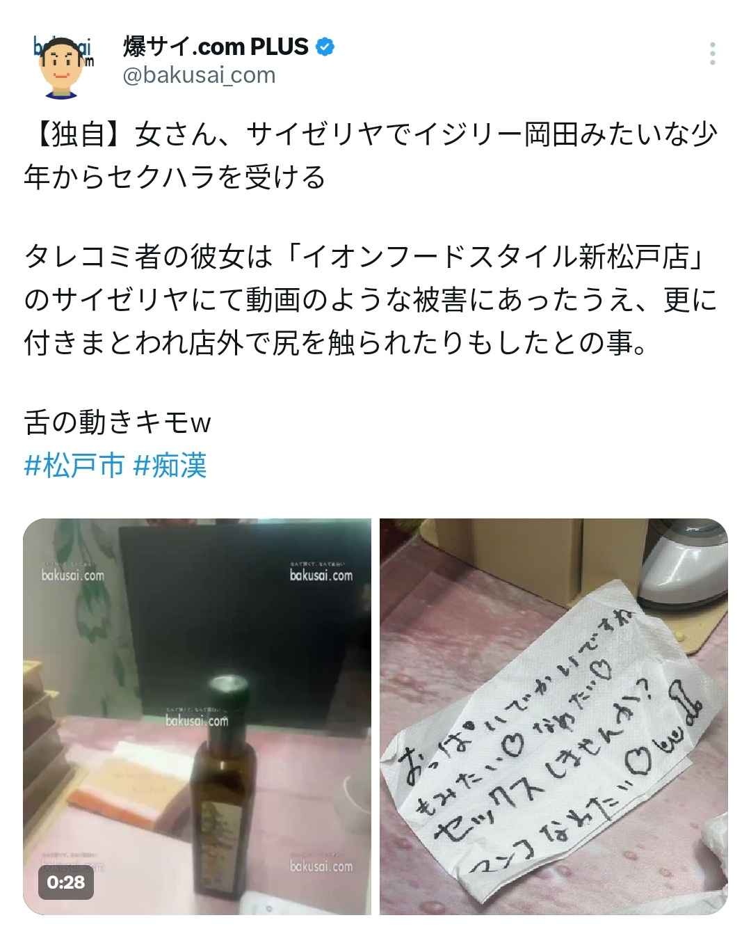 【動画】Z世代、閉店前にイオンフードスタイル松戸店のサイゼリアで女性客にエアクンニwww