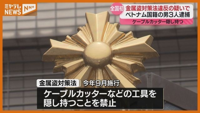 【宮城】銅線窃盗に使う『ケーブルカッター』隠し持つ…グエン容疑者ら3人逮捕、全国初の「金属盗対策法」による逮捕