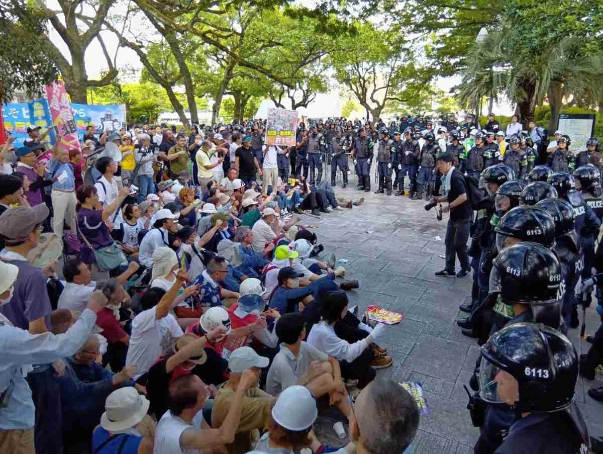 メンバーら数百人は拡声器を使って「排除を止めろ!」「暴力的な弾圧を許さないぞ!」などと猛反発。機動隊員ともみ合うなどし、現場は騒然とした。