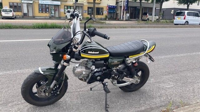 これ、車種がようわからんが、かなりいじってあるな。ダックスあたりをカワサキZ風にカスタムか?