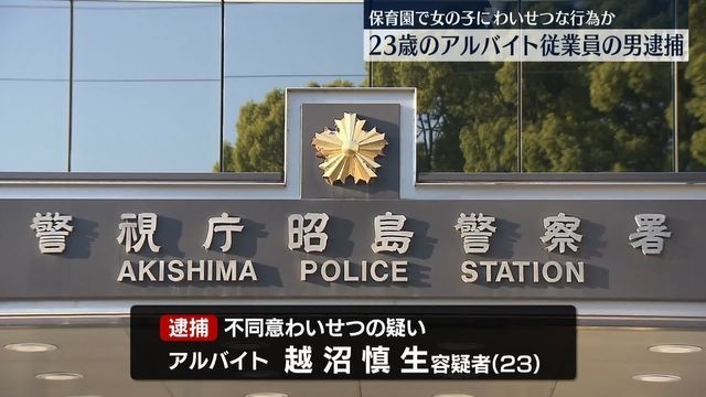 日テレNEWS NNN東京・昭島市の保育園で、この施設に通う女の子にわいせつな行為をしたとして23歳のアルバイト従業員の男が逮捕されました。