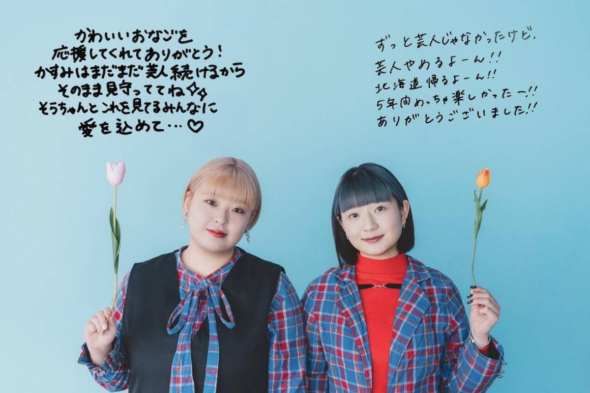 ボケ担当のそら(24)は「ずっと芸人じゃなかったけど、芸人やめるよーん!! 北海道帰るよーん!!」とコメント。「5年間めっちゃ楽しかったー!!ありがとうございました!!」と感謝した。