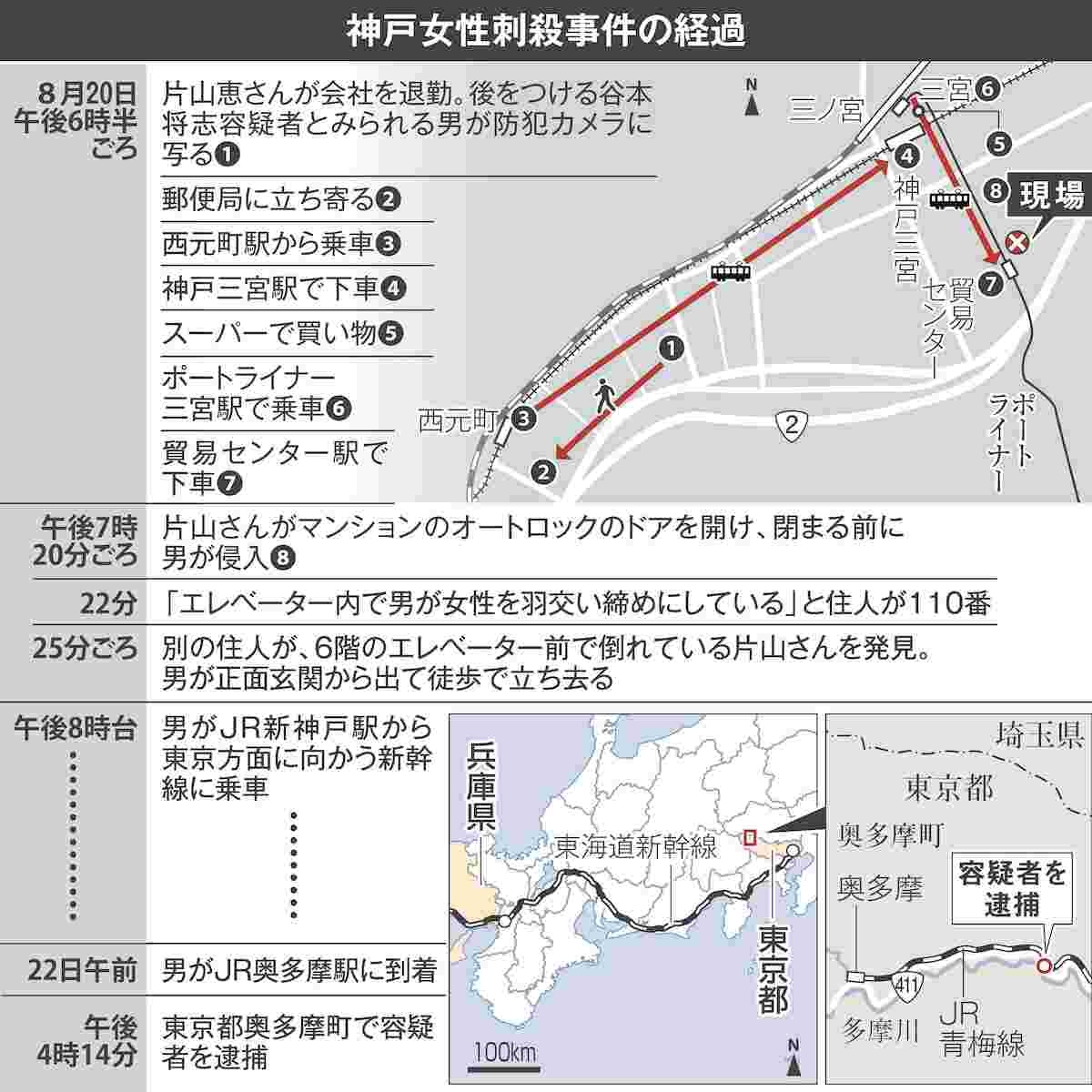 谷本容疑者が勤めていた東京の会社から休暇を取得し、神戸入りしたのは17日。片山さんの自宅や勤務先から近いホテルに宿泊していた。