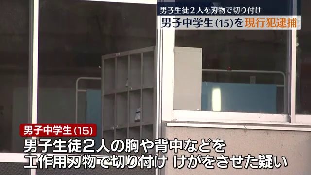 福島中央テレビニュース福島市内の中学校で生徒2人を刃物で切りつけケガをさせたとして、15歳の男子中学生が現行犯逮捕されました。