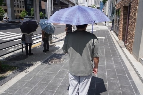 7月3日の東京都心の最高気温は33.8℃。平年より5℃以上高い強烈な日差しが、頭に容赦なく降り注ぐ。