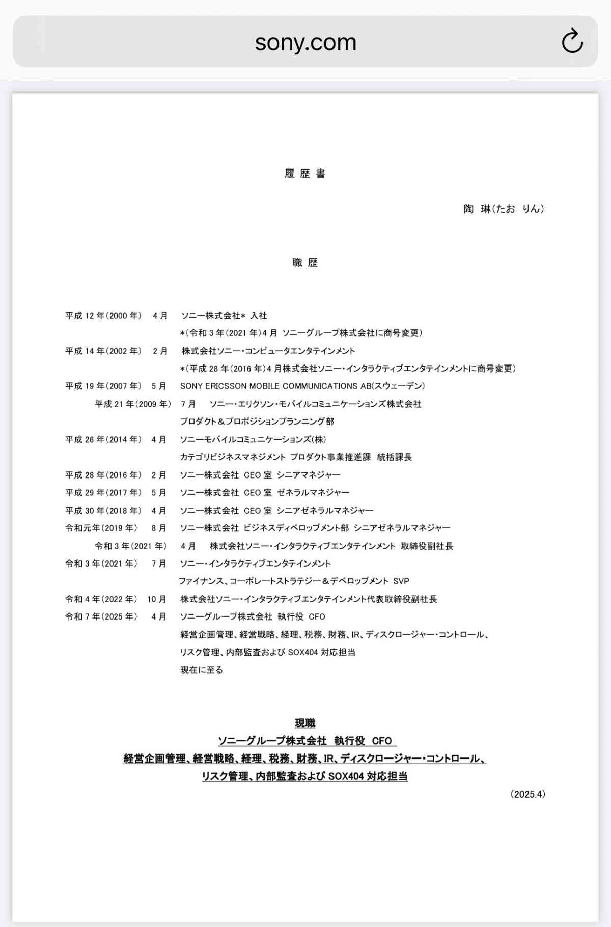 陶琳(タオ・リン)の国籍は、ソニーグループのCFOに就任した際の報道によると、中国です。彼女はソニー・インタラクティブエンタテインメント(SIE)の副社長として財務を統括していました。