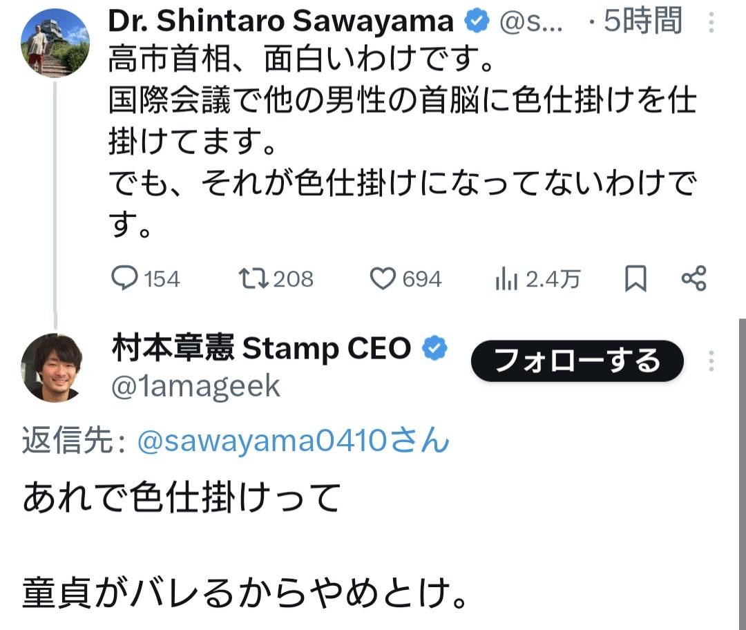 パさん「高市首相、面白いわけです。国際会議で他の男性の首脳に色仕掛けを仕掛けてます」