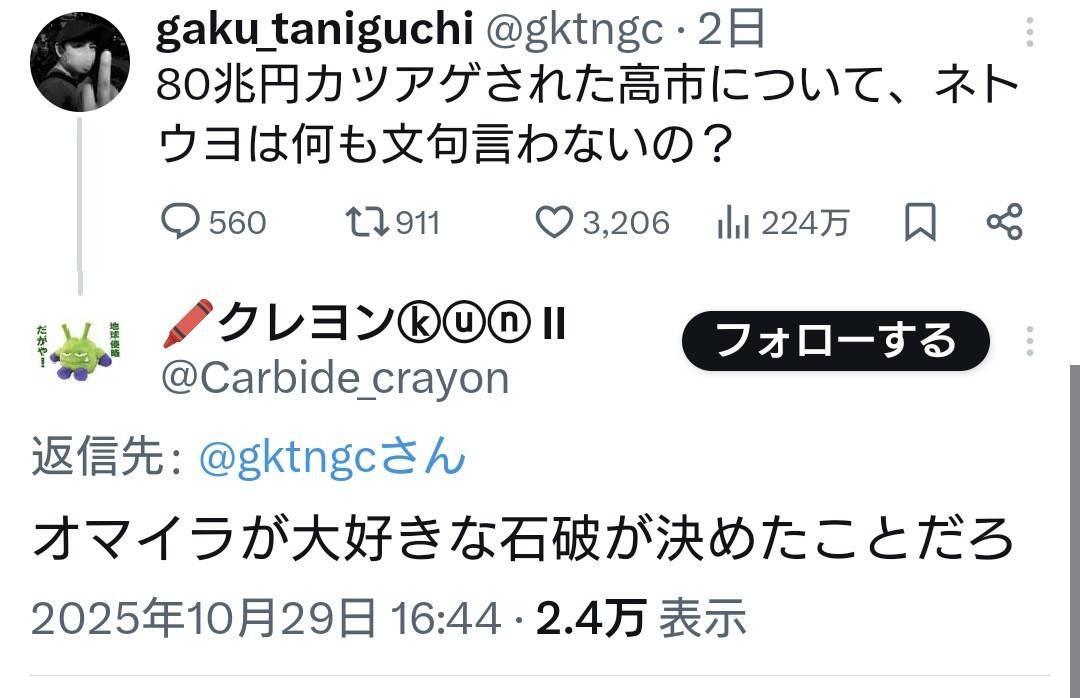 パさん「80兆円カツアゲされた高市について、ネトウヨは何も文句言わないの?」
