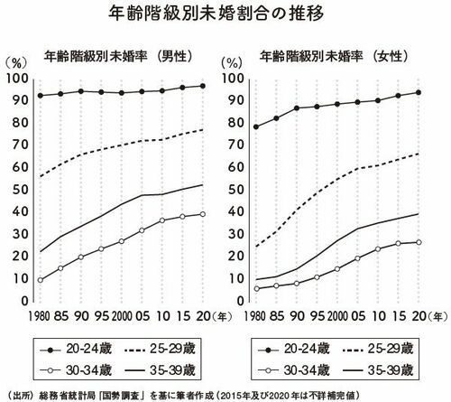 「いまどきの若者は、結婚も面倒なんでしょ」そんな批判が目に見えて増えたのが、14?15年ごろ。20代の未婚率が、男女で8割前後(男性85.0%、女性77.5%)にのぼったころからです(総務省「国勢調査」)。