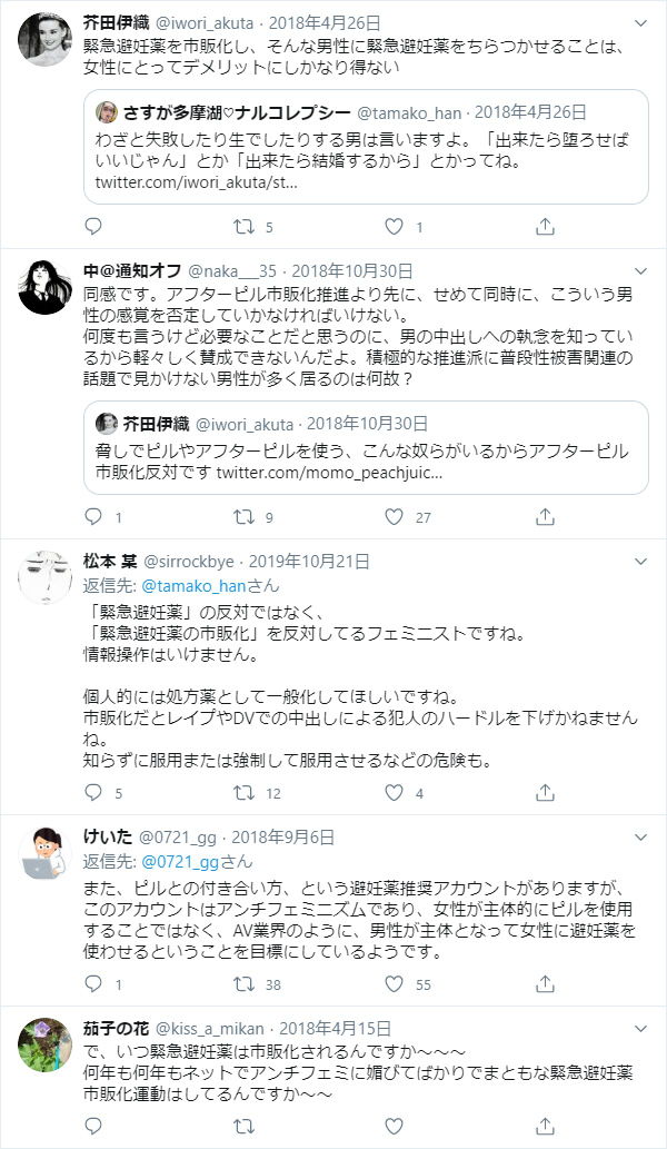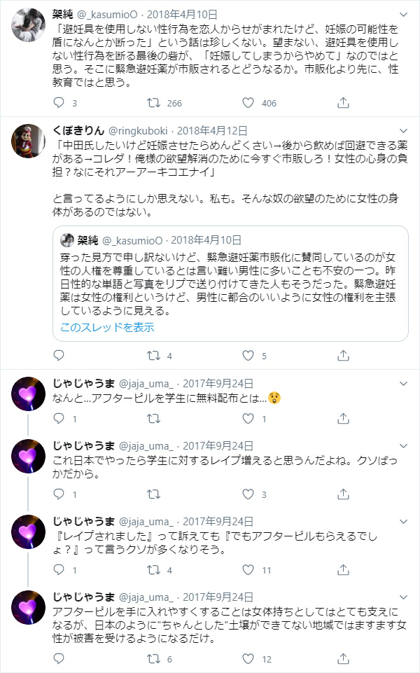 一応補足、Twitterで緊急避妊薬市販化運動が始まった時、呼びかけ人の方々がツイッターフェミズムに批判的だったせいで、
