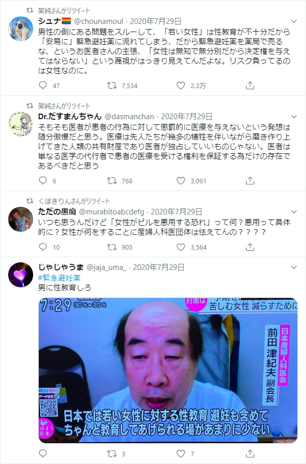 テレビで緊急避妊薬が肯定的に報道されて世間の風向きが変わった途端に一斉に手のひらを返して