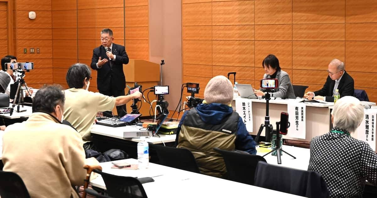 会は社民党の福島瑞穂党首や立民の有田芳生衆院議員らが呼びかけ人となった。今回が2回目。スパイ防止法の必要性を巡り政府は8月の答弁書で「多角的かつ慎重に検討されるべき」とするにとどめた一方、「外国情報機関によりわが国に対する情報収集活動が行われている」との認識を示した。自民や日本維新の会、国民民主党、参政党などは国の重要情報を守り、他国のスパイを摘発する必要性を指摘し、制定を掲げている。