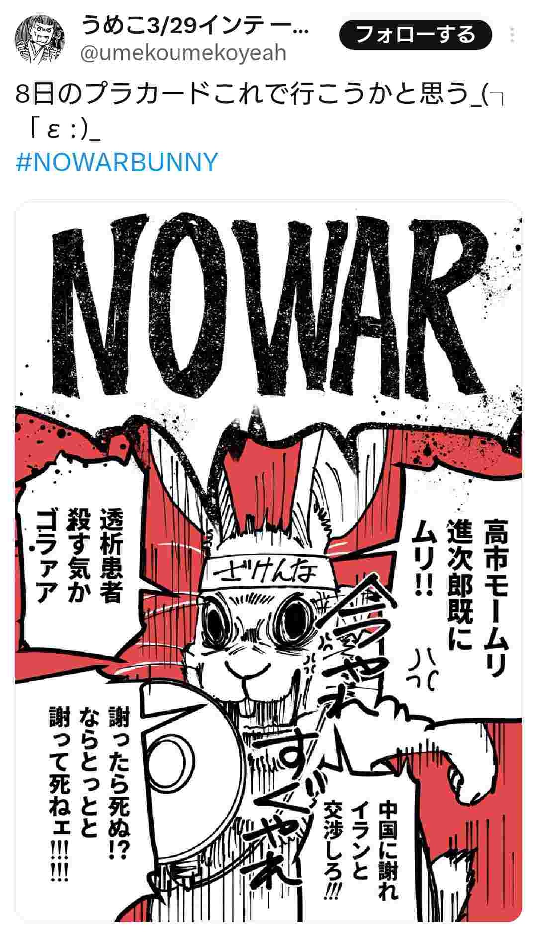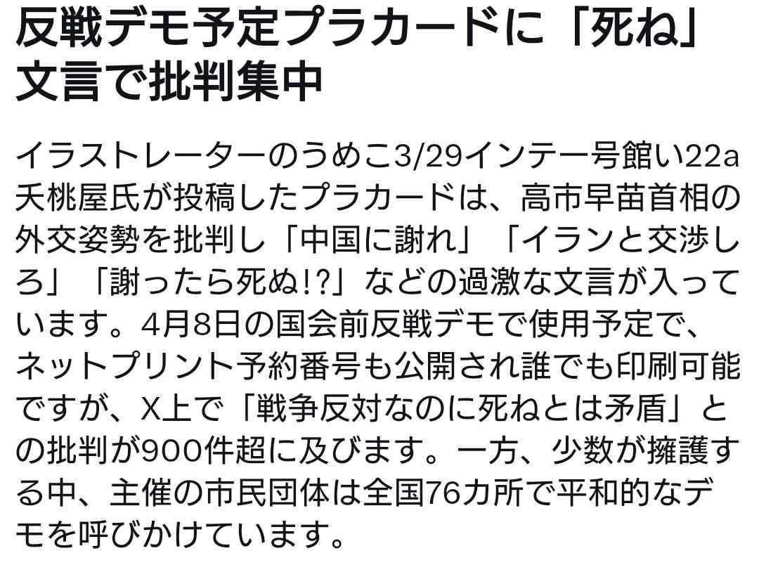 反戦デモ予定プラカードに「謝ったら死ぬ?ならとっとと4ね!!」文言で批判集中