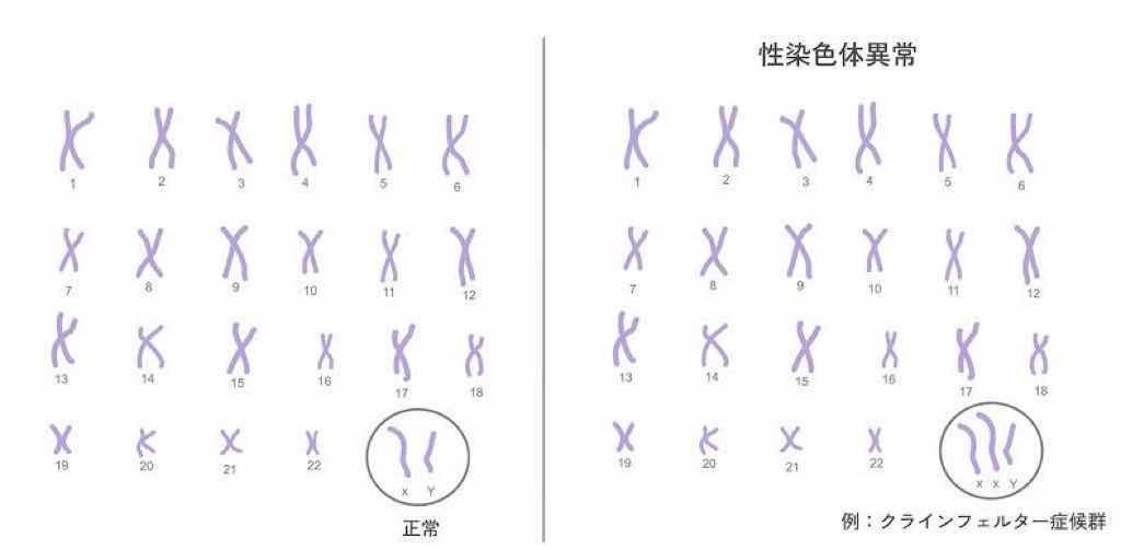 「X染色体」と「Y染色体」が1本ずつあれば男、