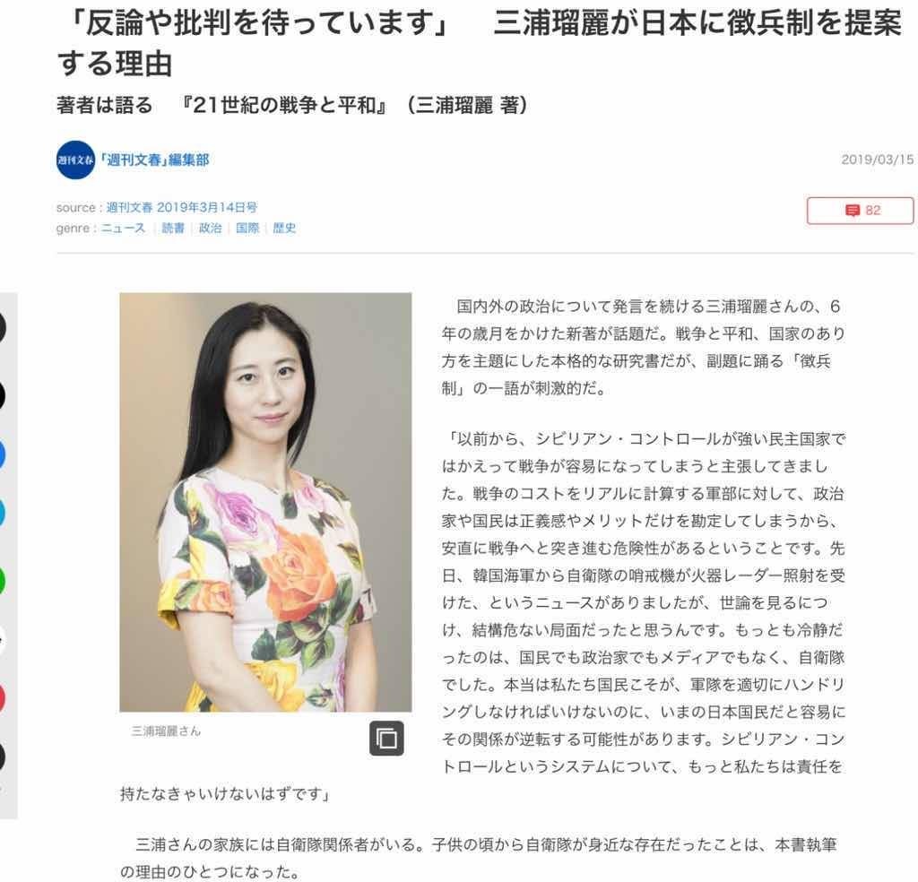 「反論や批判を待っています」 三浦瑠麗が日本に徴兵制を提案する理由 | 文春オンライン国内外の政治について発言を続ける三浦瑠麗さんの、6年の歳月をかけた新著が話題だ。戦争と平和、国家のあり方を主題にした本格的な研究書だが、副題に踊る「徴兵制」の一語が刺激的だ。「以前から、シビリアン・…bunshun.jp - 2 : 2025/07/09(水) 14:59:14.15 ID:D5DaMODJ0