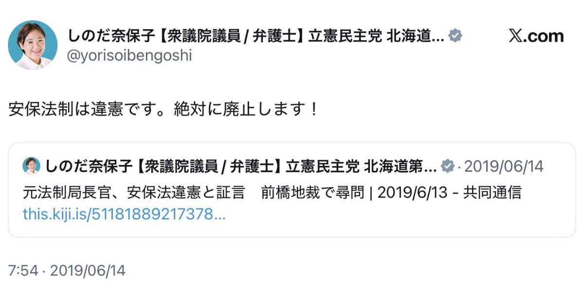 しのだ奈保子【衆議院議員/ 弁護士】 立憲民主党 北海道第7区 (@yorisoibengoshi) on X