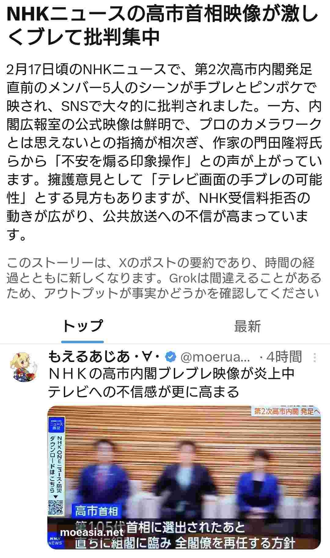 支持率下げてやるのNHKニュースの高市首相映像が激しくブレて批判集中