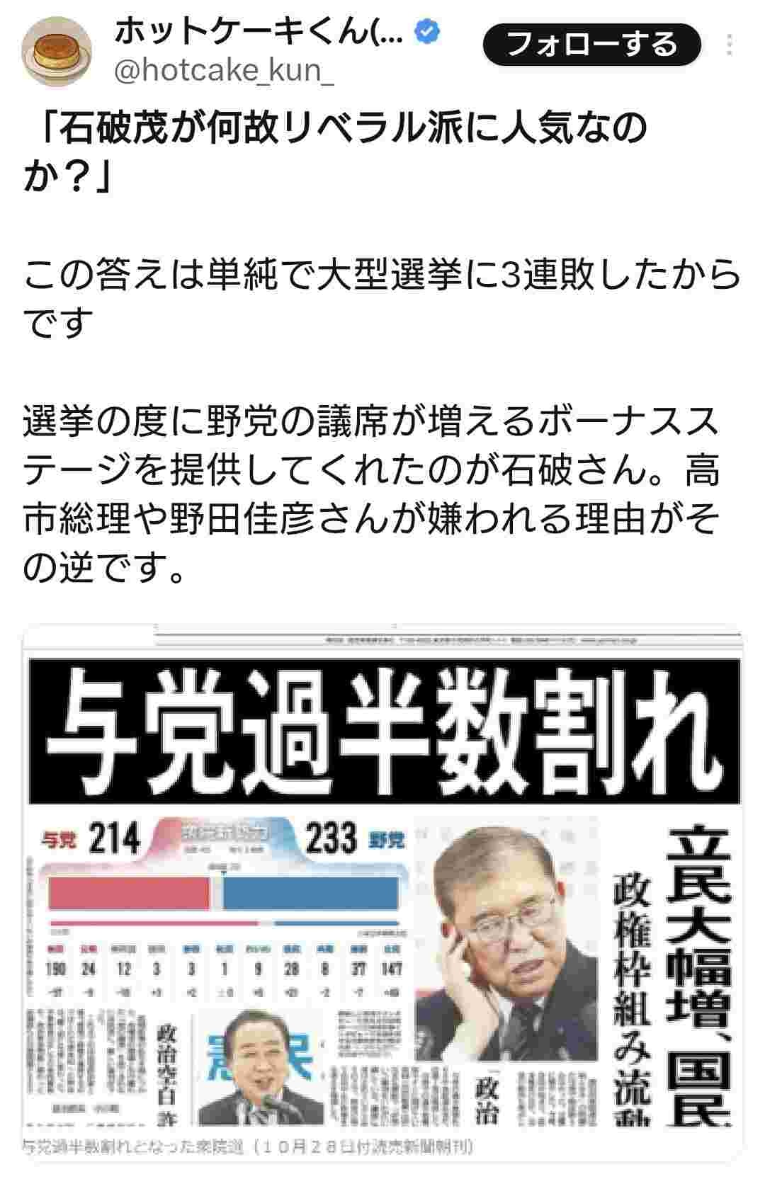 石破の支持者は選挙では自民党に投票しない、または選挙権自体有しない説は石破総理の時の選挙結果である程度真実と検証されたしな