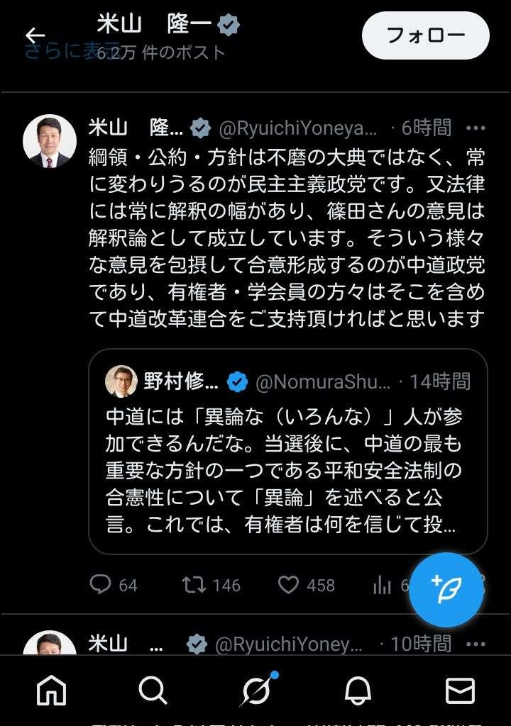 米山氏「綱領・公約・方針は常に変わりうるのが民主主義政党」