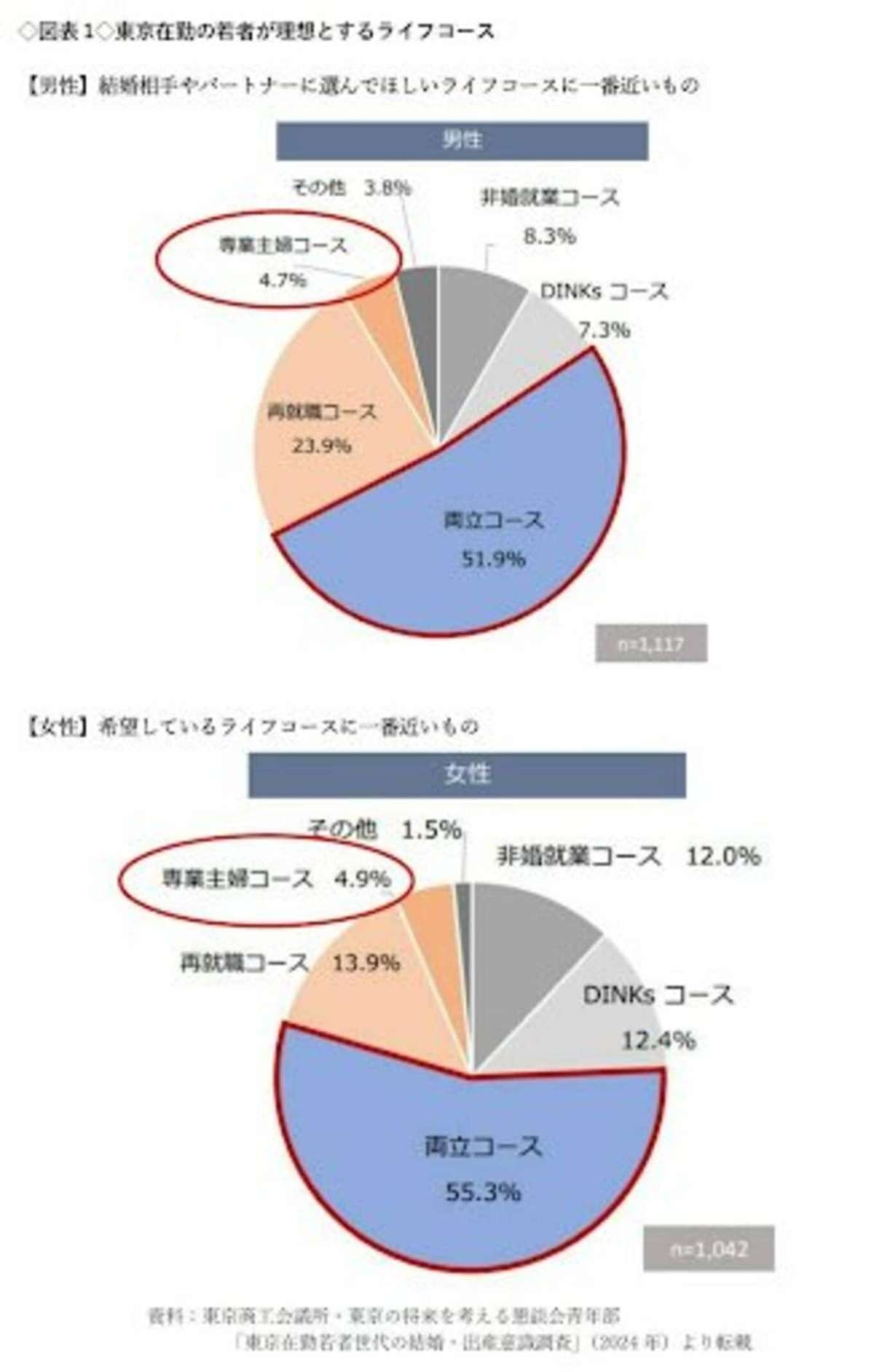 若い男性は結婚相手に「専業主婦」を求めず、若い女性も「専業主婦」希望せず 若者2195人が回答 共働きの方が子どもが多い調査結果も