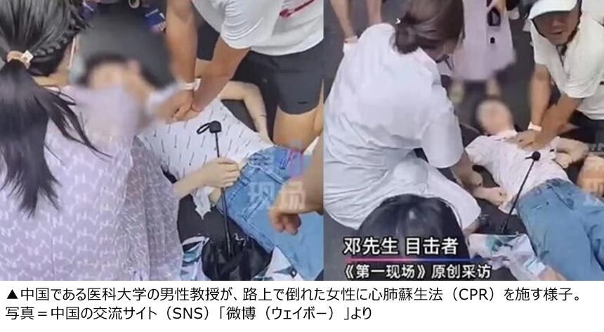 https://www.chosunonline.com/m/svc/article.html?contid=2025072280011中国で、路上で倒れた女性を心肺蘇生法(CPR)により救助しようとした男性教授が、インターネット上で「不必要に胸を触った」と非難を浴び、苦しい胸の内を告白した。香港紙「サウスチャイナ・モーニング・ポスト(SCMP)」が21日に報道した。