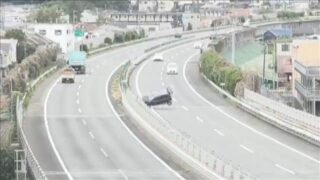 ニュー速 【動画】中央道上りで軽乗用車が横転 男性が重傷