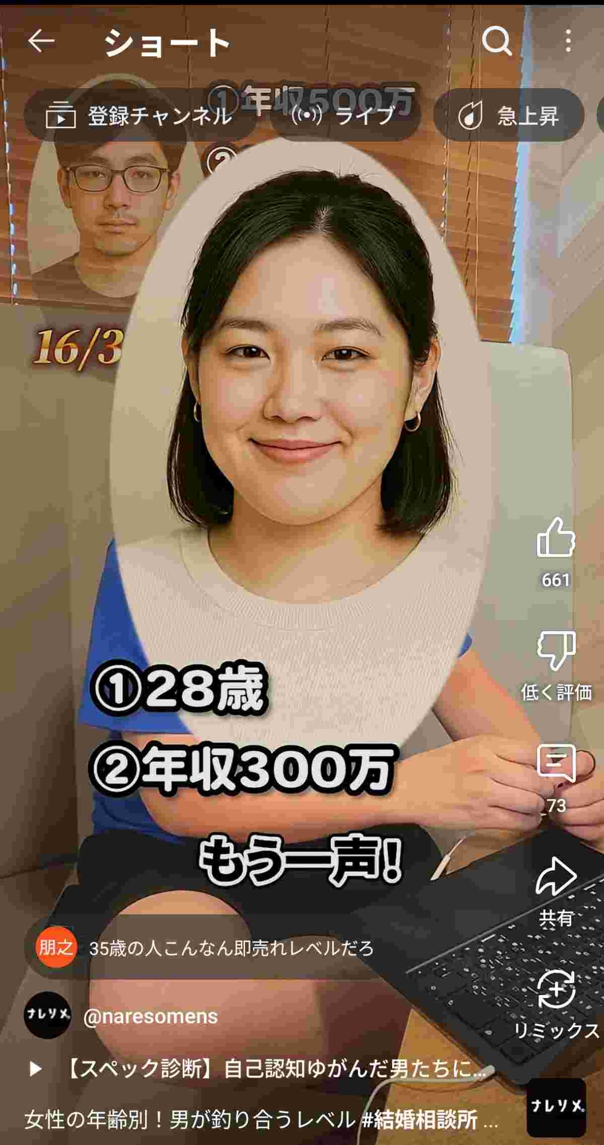 - これ男のスペック云々より女の年齢の価値が高すぎるだけだろ