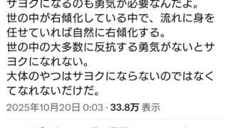 ニュー速 左翼「サヨクになるのも勇気が必要なんだよ。世の中の大多数が右翼だから」